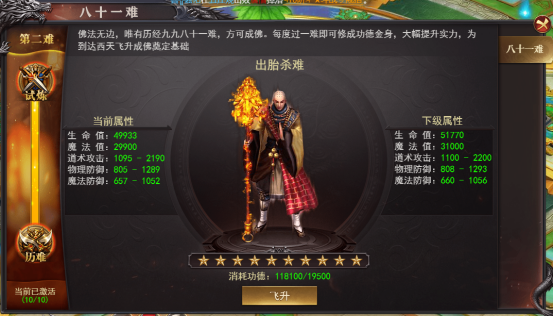 2:达到10星之后需要消费对应的劫难证明,完成之后可获取法器碎片奖励