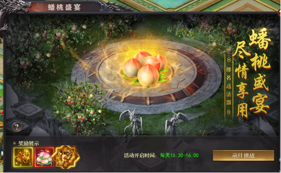 2.每10秒获得一次功德经验和蟠桃积分,蟠桃积分达到条件可获得奖励,奖励通过邮件发放
