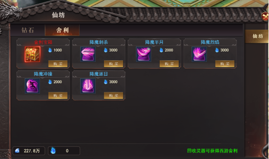 2、仙坊使用舍利进行换取,舍利击杀怪物回收装备大量获取